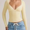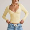 Modal Ruched Long-Sleeve Top in Buttercream Yellow