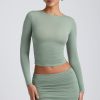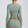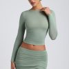 Modal Ruched Long-Sleeve Top in Sage Green