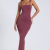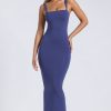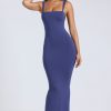 Sculpting staples. Designed in our dual-layered jersey fabric made with TENCEL™ Modal fibres, derived from controlled or certified wood sources, the Savannah dress is cut to a chic midaxi silhouette. Framed with a square neckline and tapered shoulder straps, it’s complete with a low curved back anchored with delicate tie fastenings that add a hint of glamour.