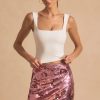Luxe staples. Clean and contoured, the Sirae tank top is crafted from premium stretch jersey made with TENCEL™ Modal fibres derived from controlled or certified wood sources that support long-lasting softness. It’s cut to a square-neck silhouette, framed with tapered straps, and designed with a seamless finish for a second-skin fit.