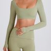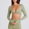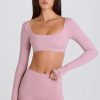 Press pause. Silky smooth and cool to the touch, this crop top is made from our stretchy performance fabric for a second-skin fit. It’s cut to a micro silhouette with long fitted sleeves that stay in place and twist-back detailing you’ll love.