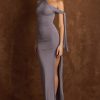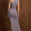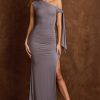 Perfect for evening plans, the Prudy maxi dress is a minimalist design elevated with striking elements. Crafted from premium semi-sheer stretch jersey with a slinky jersey lining, it’s cut to a figure-hugging, asymmetric silhouette with one fixed shoulder strap and an off-shoulder tie strap that can be adjusted for your perfect fit. It’s complete with precise ruched detailing and a thigh-high side split.
