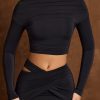 New season, new looks. The ideal day-to-night styling piece, the Dova crop top is cut to a high-neck silhouette and turns to reveal a statement open back, complete with twisted detailing. It’s crafted from premium semi-sheer jersey with a touch of stretch and elevated with all-over ruching that creates a draped effect.