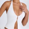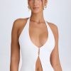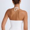 Dress up or down with the Covia top. Crafted to a statement open-front silhouette, it’s crafted from premium stretch-knit jersey to a classic halterneck silhouette. It’s secured with two front buttons and an adjustable tie at the nape for custom styling. Love creating a coordinating look? Style it with the Cedara maxi skirt in a tonal hue.