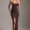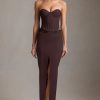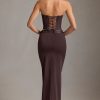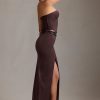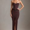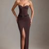 Pinstripe Low-Rise Maxi Skirt in Chocolate Brown