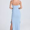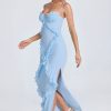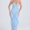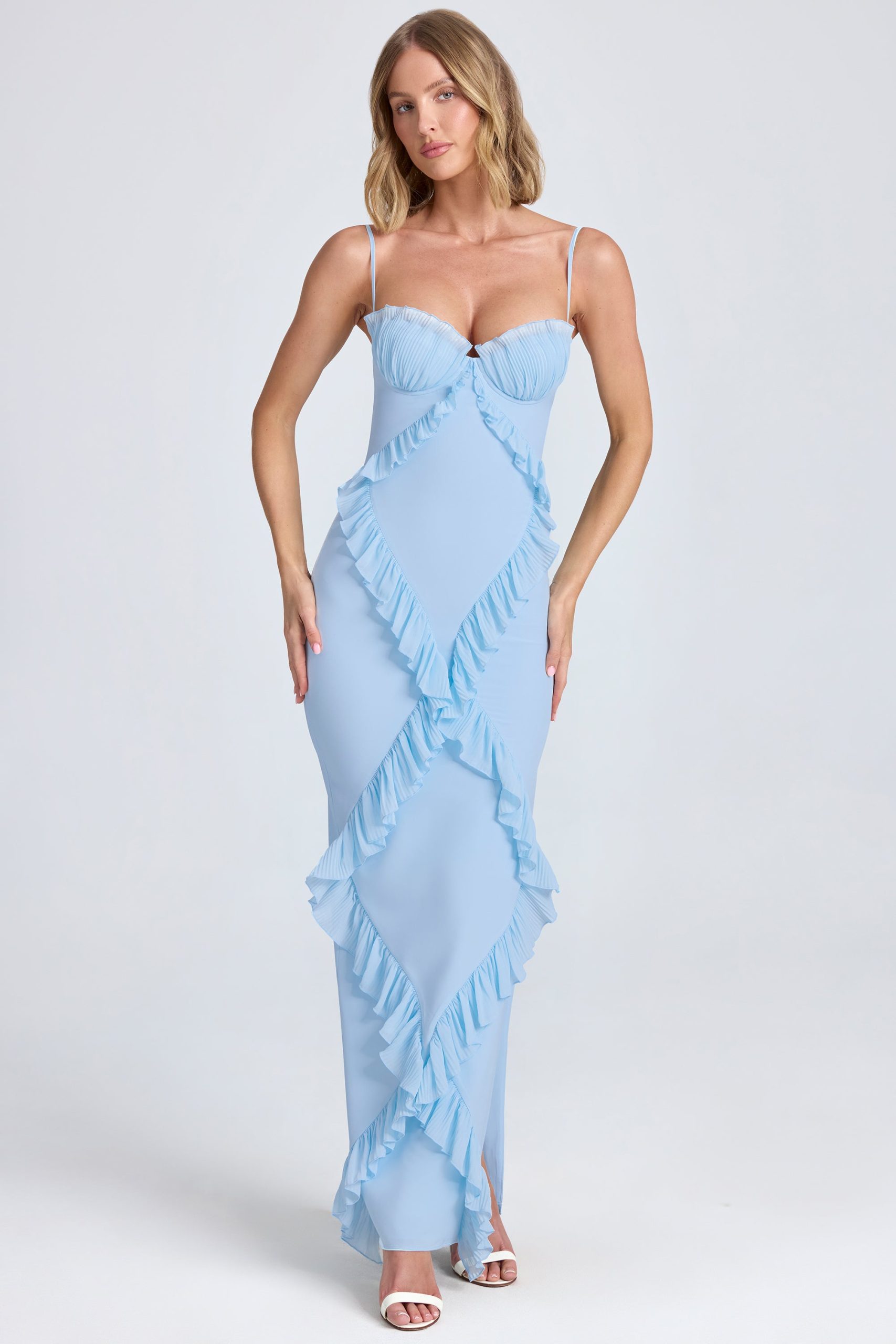 Ethereal silhouettes. Designed to elevate your occasionwear rotation, the Kazumi maxi dress is crafted from lightweight georgette and adorned with intricate plissé ruffle trims and cups that create a stunning three-dimensional effect. It’s cut to a classic column silhouette, punctuated with a side split, and framed with a whimsical sweetheart neckline.