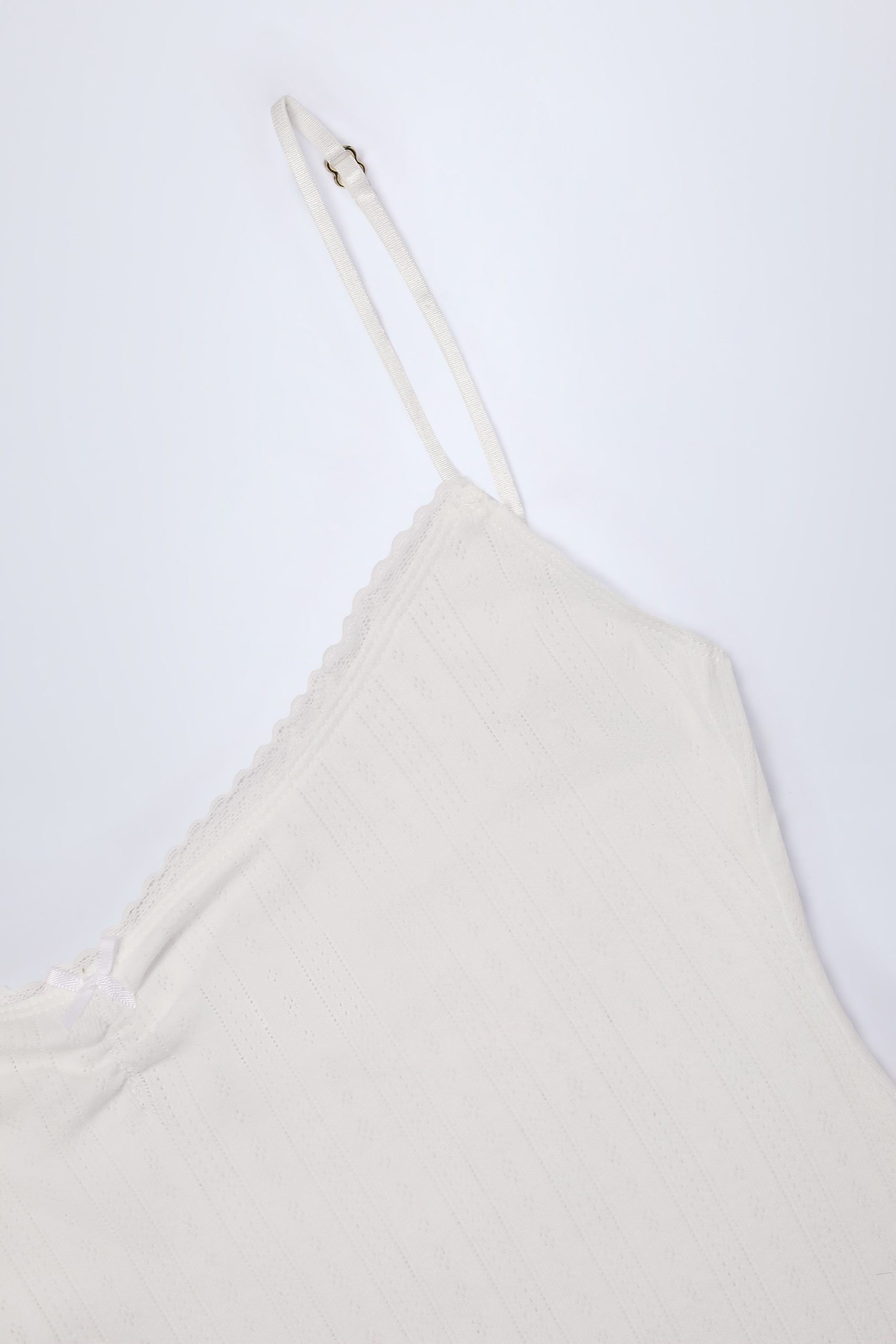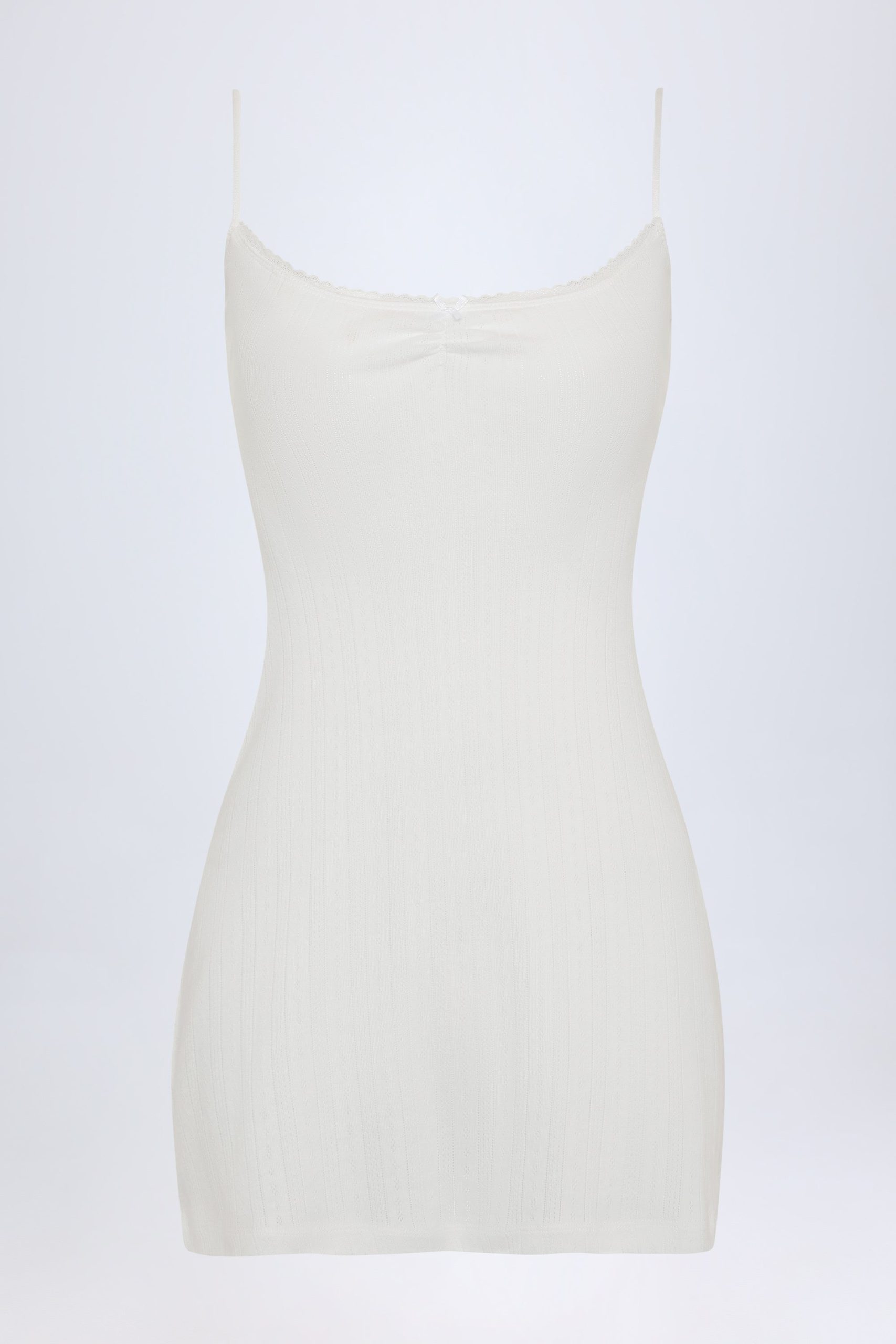 Dress for the day you want. Soft, stretchy and lightweight, the Alika mini dress is crafted from cotton jersey with a delicate pointelle texture and cut to a universally flattering A-line silhouette that skims your curves. It’s framed with a sweetheart neckline detailed with perfectly placed ruching and a tonal bow embellishment, and features adjustable camisole straps for a comfortable fit.