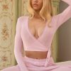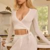 Slow moments, sweet silhouettes. Perfectly soft, breathable and lightweight, the Lou crop top is crafted from cotton jersey with a delicate pointelle texture. It’s cut to a wrap silhouette with a V-neck, pretty lace trims, and adjustable ties at the left-hand side for a customisable fit and coverage.