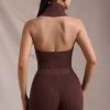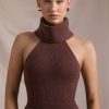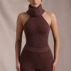 Ribbed-Knit Turtleneck Backless Top in Espresso