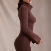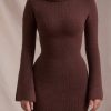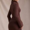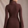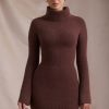 Ribbed-Knit Turtleneck Mini Jumper Dress in Espresso