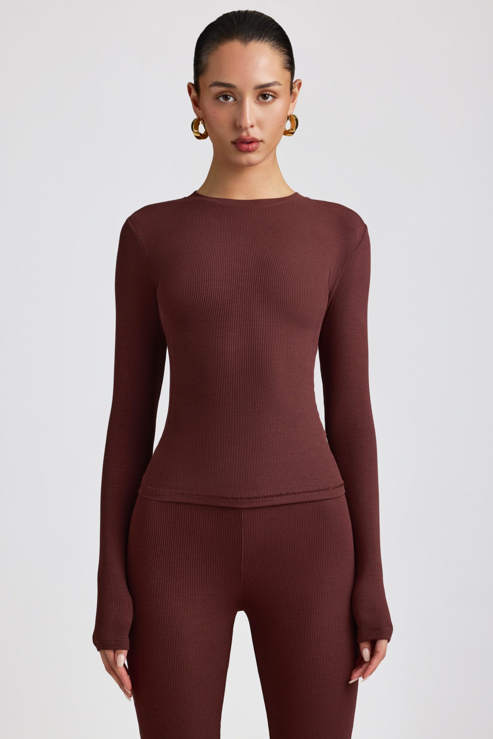 Ribbed Modal Crew Neck Top in Espresso
