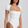 A sweet take on everyday styles, the Arden bodysuit is framed with a flattering square neckline and enhanced with delicate picot lace trims. Available in two neutral hues for versatile styling, it’s crafted from breathable stretch-ribbed fabric with biodegradable TENCEL™ Modal fibres and double-layered for enhanced coverage.