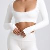 The Calla crop top is a coquette-inspired twist on a classic everyday staple. Made from our dual-layered stretch-ribbed fabric with TENCEL™ Modal fibres that feel twice as soft as cotton, it’s shaped to a curved silhouette and features a scoop neckline traced with tonal picot lace trims, echoing the collection’s whimsical vibe.