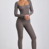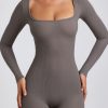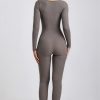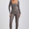 Ribbed Modal Long Sleeve Jumpsuit in Grey