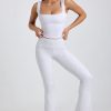 Ribbed Modal Mid-Rise Foldover Flared Trousers in Grey
