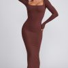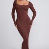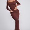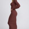 Ribbed Modal Mid Rise Maxi Skirt in Chocolate