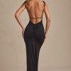 Subtle statements. The perfect option for dinner dates, the Devika maxi dress is crafted from our buttery soft and stretchy slinky jersey to a sleek column silhouette, framed with adjustable tie shoulder straps and a low open back with figure-enhancing ruching. It’s complete with a perfectly placed central godet pleat that creates volume at the back.