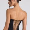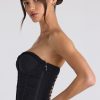 Inspired by classic corsetry, the Melvina top is a romantic, full-length style that can be dressed up or down to suit any event. It’s crafted from lightweight georgette with a touch of stretch to a strapless silhouette enhanced with wired cups for additional support. It’s complete with ruching, ruffle trims, and an adjustable lace-up back.