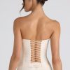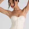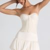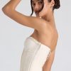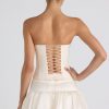 Inspired by classic corsetry, the Melvina top is a romantic, full-length style that can be dressed up or down to suit any event. It’s crafted from lightweight georgette with a touch of stretch to a strapless silhouette enhanced with wired cups for additional support. It’s complete with ruching, ruffle trims, and an adjustable lace-up back.