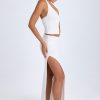 Luxe, versatile staples. A fresh style you’ll wear for years to come, the Cedara maxi skirt is crafted from premium stretch-knit jersey with a touch of stretch and cut to a figure-hugging column silhouette. Designed for a low-rise fit, the crossover waistband is complete with flattering ruching. Create the perfect co-ord by styling it with the Covia top in a matching hue.