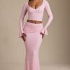Ruffle Long-Sleeve Lace Top in Soft Pink