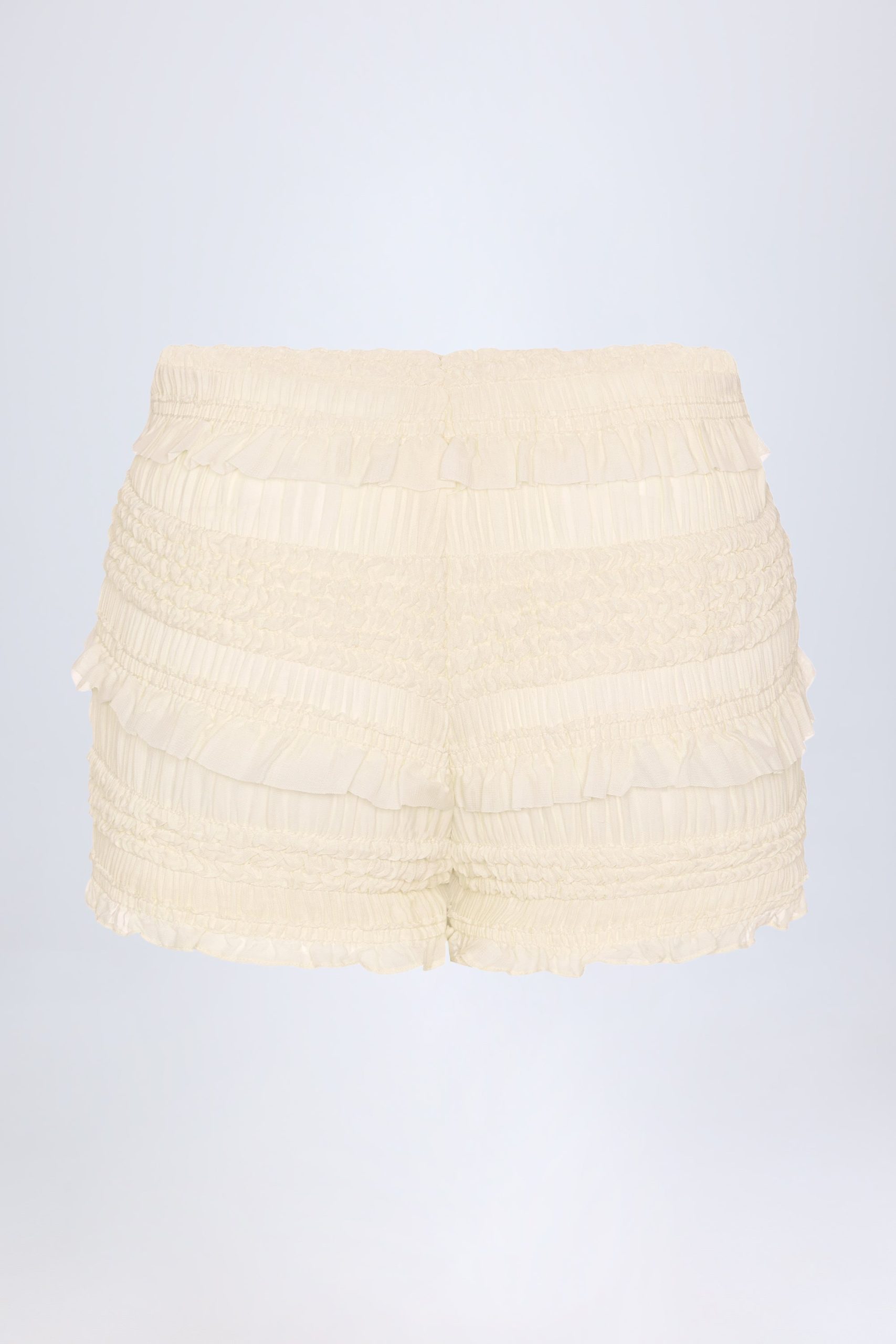 Playful separates. Inspired by cutesy bloomer styles, the Orla shorts are crafted from our custom-designed textured mesh, elevated with ruffle trims, and designed to be styled with the matching top for the perfect festival look. They’re cut for a mid-rise fit and feature a comfortable elasticated waistband.