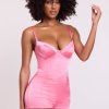 Effortless seduction. Designed in our high shine satin fabric and cut to a curve-enhancing bodycon fit, the Romera playsuit is perfect for sultry evenings. A fun and flirty silhouette, Romera is complete with underwired cups, a cheeky length and figure-cinching built-in corsetry.
