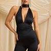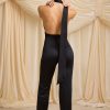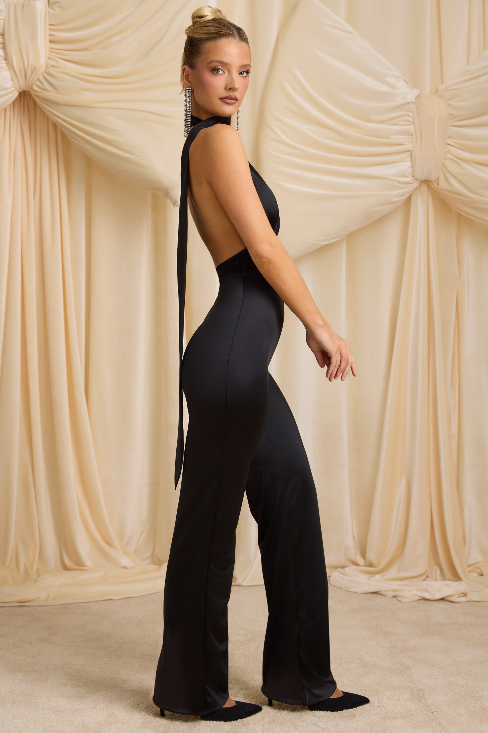 Chic and timeless, the Vivianne jumpsuit is crafted from satin jersey with a touch of stretch for enhanced comfort. It’s cut to a universally flattering wide-leg silhouette with a plunging halterneck and V-shaped panel that cinches and sculpts your waist. It’s complete with an open back and a coordinating fixed scarf that’s designed to be draped over the shoulder.