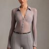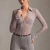 Sheer minimalism. An elevated and versatile styling piece, the Yvaine shirt is crafted from premium semi-sheer mesh with a touch of stretch and cut to a figure-skimming fit. Traced with functional tonal buttons at the front for custom styling, it features contouring princess seams, a crisp collar and long sleeves with slightly flared cuffs.
