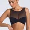 Designed with statement styling in mind, the Yume top is crafted from premium 20D stretch mesh with a sheer jersey panel that creates a high-neck look. Its enhanced with precise ruching and cut to a cropped length with a curved underbust.