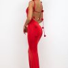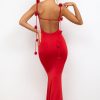 The Aldona evening maxi dress has a bodycon shape which graduates into a kick flare hem with ruffling.