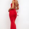 The Aldona evening maxi dress has a bodycon shape which graduates into a kick flare hem with ruffling.