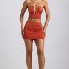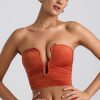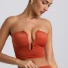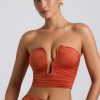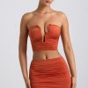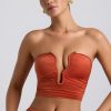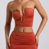 Look to the Morowa top for infallible styling from sunrise to sunset. Rendered in two versatile hues, it’s crafted from our slinky jersey fabric and delicately ruched to achieve a universally flattering fit. The strapless silhouette is uplifted with custom-developed hardware that supports the plunging, irregularly shaped neckline.