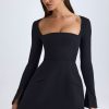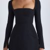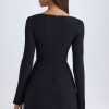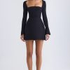 Classic structure. Your new favourite for dressed-up dinner dates and evening plans, the Taesha mini dress is crafted from premium stretch-woven fabric to a structured silhouette with a figure-defining bodice and exaggerated tulip skirt that accentuates your shape. It’s complete with long flared sleeves and decorative slip pockets that speak to the timeless tailoring inspiration.