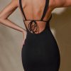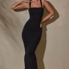 Sculpting staples. Designed in our dual-layered jersey fabric made with TENCEL™ Modal fibres, derived from controlled or certified wood sources, the Savannah dress is cut to a chic midaxi silhouette. Framed with a square neckline and tapered shoulder straps, it’s complete with a low curved back anchored with delicate tie fastenings that add a hint of glamour.