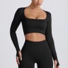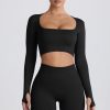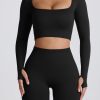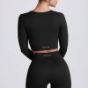 The gym staples you’ve been waiting for. Designed to support you through any workout, this long-sleeve crop top is crafted from our bestselling, four-way stretch Super Sculpt seamless fabric with moisture-wicking, breathable and sculpting properties. It features a non-restrictive yet compressive wide underband for support and comfortable thumbholes to prevent the sleeves from riding up during even the most intense activities.