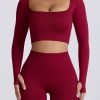 The gym staples you’ve been waiting for. Designed to support you through any workout, this long-sleeve crop top is crafted from our bestselling, four-way stretch Super Sculpt seamless fabric with moisture-wicking, breathable and sculpting properties. It features a non-restrictive yet compressive wide underband for support and comfortable thumbholes to prevent the sleeves from riding up during even the most intense activities.