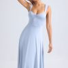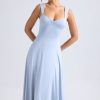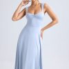 Summery silhouettes. Crafted from premium, lightweight slinky jersey, the Thandie midaxi dress is the perfect option for golden hour plans – think al fresco dinner dates or rooftop drinks. It’s cut to a breezy A-line silhouette with a full circle skirt, tempered by the fitted bodice and ruched sweetheart neckline. The curved cut-out at the back is anchored with adjustable ties and adds a statement touch.