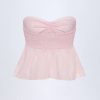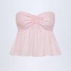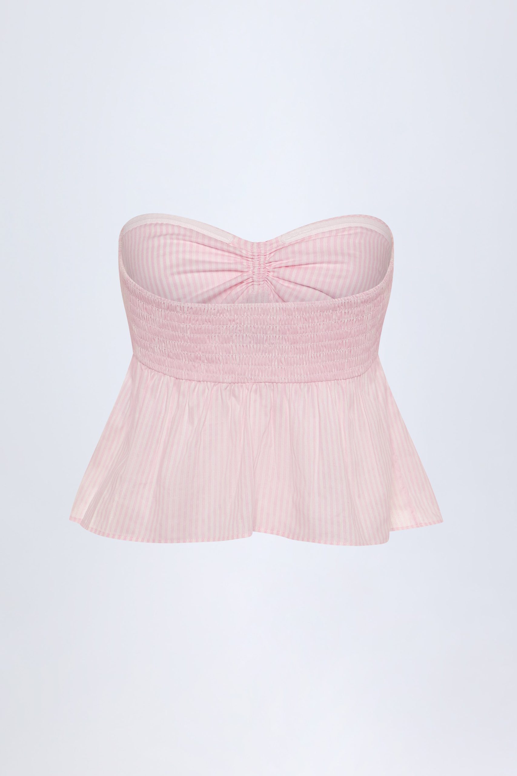 Tie-Front Strapless Cotton-Poplin Crop Top in Pink & White Stripe