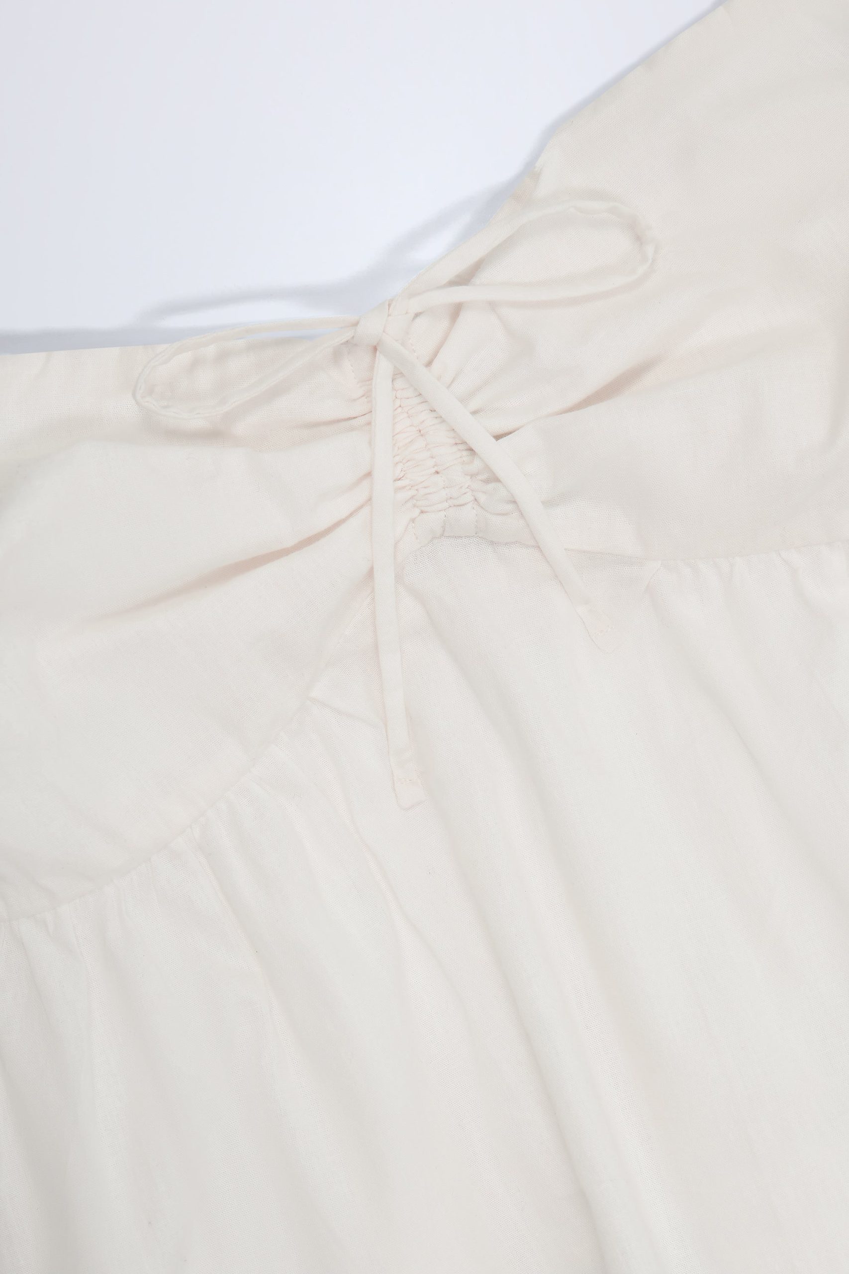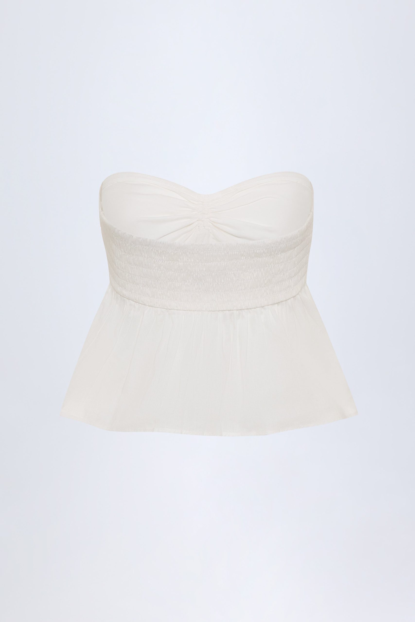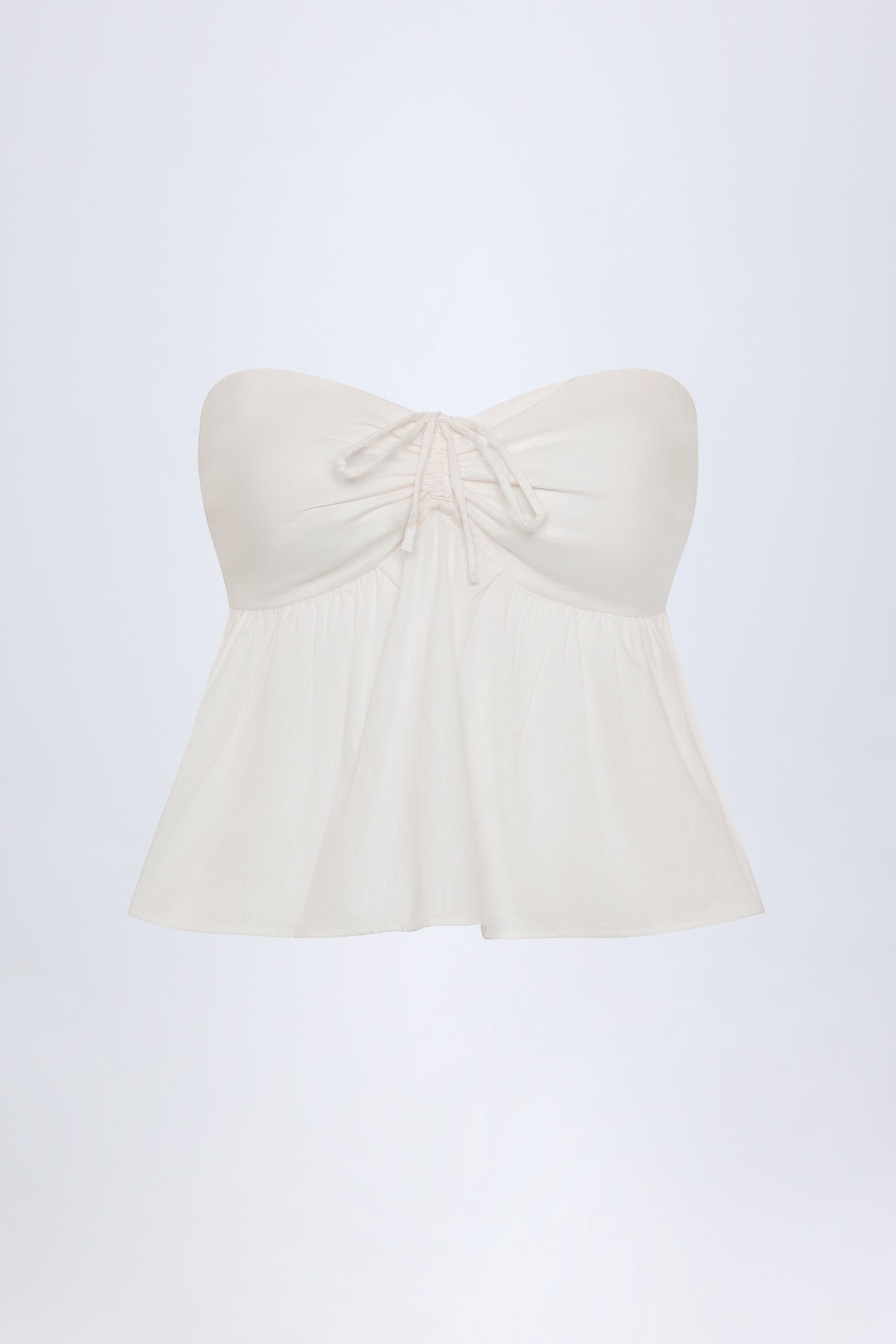Dreamy and off-duty, the Alma crop top is crafted from lightweight and breezy cotton poplin to a bandeau silhouette with partially lined cups for enhanced coverage and features a smocked panel at the back for a comfortable fit. It features gathered detailing at the front and adjustable ties for multiple styling options.