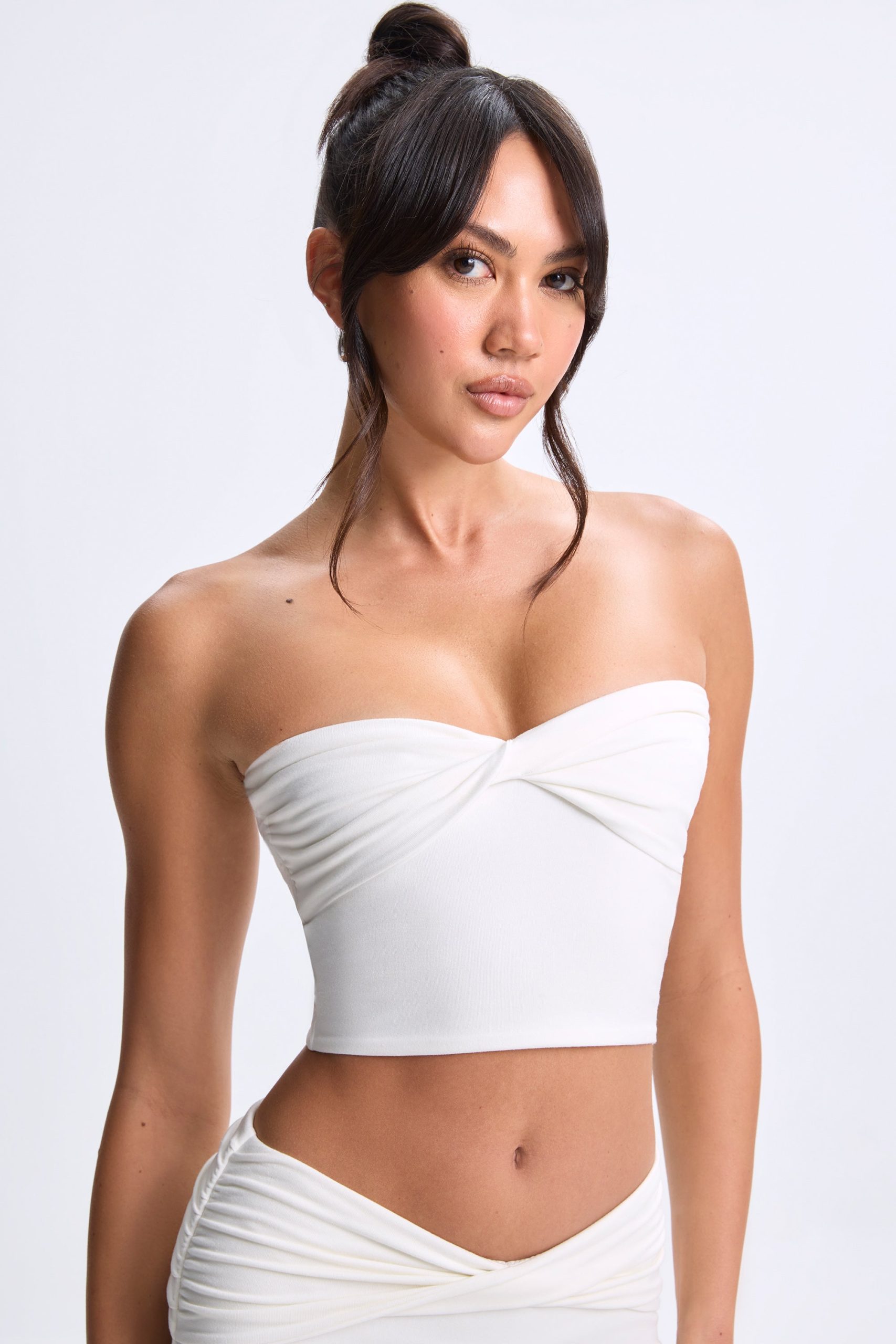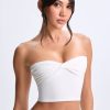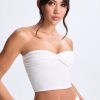 Minimal effort, maximum impact. A classic silhouette with a signature Oh Polly touch, the Edie bandeau top is elevated with intricate twist-front detailing at the bust that creates a sweetheart neckline. It’s crafted from our signature buttery soft jersey fabric made with TENCEL™ Modal fibres, derived from controlled or certified wood sources, and features internal silicone taping for enhanced hold.