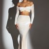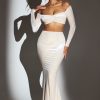 A timeless evening staple, the Nixie mid-rise maxi skirt is designed in our premium, ultra-soft velvet fabric. With side ruching at the hips and an elasticated waistband, the Nixie maxi skirt graduates into an elegant fishtail hem. Pair yours with our matching Adele off-the-shoulder top.
