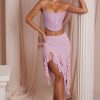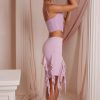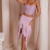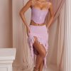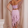 Create an elegant and romantic co-ord with the Thea midaxi skirt. Designed in our deluxe georgette fabric, the Thea midaxi skirt has an on trend low waist band that perfectly compliments the Lena corset top. With angled panels that accentuate your shape, the Thea midaxi skirt features waterfall frill detailing throughout that cascade throughout the style to create an elegant silhouette. Complete with a thigh high split on the left side that maximizes allure, this statement midaxi skirt is a must have piece for creating an elegant and romantic two piece look.