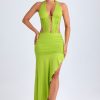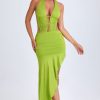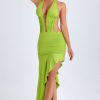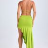 Asymmetric Cut-Out Halterneck Midaxi Dress in Lime Green