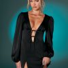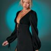 We love the statement balloon sleeves on Vanna, our all new mini dress designed to ensure all eyes are on you. The deep plunge neckline is accentuated with self tie fastenings that can be adjusted to create your perfect fit, whilst the wide long sleeves add an elegant twist to this statement mini. Complete with a bias cut, a-line mini skirt that skims your curves and features a leg lengthening side split, we know you’ll love this seductive mini dress this season.