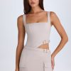 Perfect for styling from day until night, the Acadia mini dress is crafted from premium slinky twill with a stretch-cotton poplin lining to a figure-hugging silhouette enhanced with shaping seams. It’s punctuated with a triangular waist cut-out, secured with buckle-detailed straps and finished with two cargo-inspired flap pockets at the skirt that evoke an edgy, utilitarian aesthetic.
