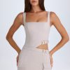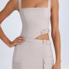 Perfect for styling from day until night, the Acadia mini dress is crafted from premium slinky twill with a stretch-cotton poplin lining to a figure-hugging silhouette enhanced with shaping seams. It’s punctuated with a triangular waist cut-out, secured with buckle-detailed straps and finished with two cargo-inspired flap pockets at the skirt that evoke an edgy, utilitarian aesthetic.