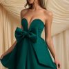 Made for your wow moment, the Norina mini dress is crafted from lustrous and lightweight non-stretch satin to a classic strapless silhouette with a fitted corset bodice for enhanced support and a voluminous organza skirt. In keeping with the festive theme, it’s embellished with a stunning oversized bow that can be detached for multiple styling options.