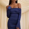 Bow-Detail Off-Shoulder Mini Dress in True Navy
