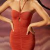 Designed in our super soft double layered fabric. Close To You features front seam ruching to flatter your figure and teardrop keyhole detailing for added drama. With self-tie straps that wrap around your neck and a bust-flattering sweetheart neckline, our sculpting bodycon mini dress is designed to enhance your best features. Pair with strappy sandals and get ready for your close up, babe.